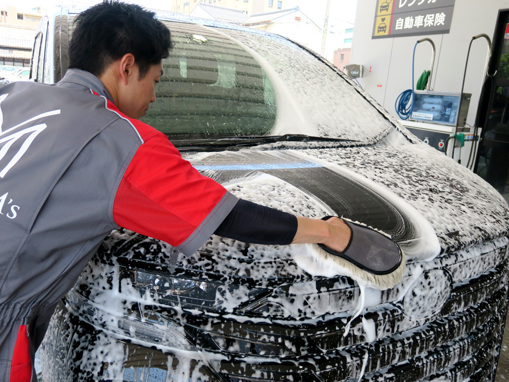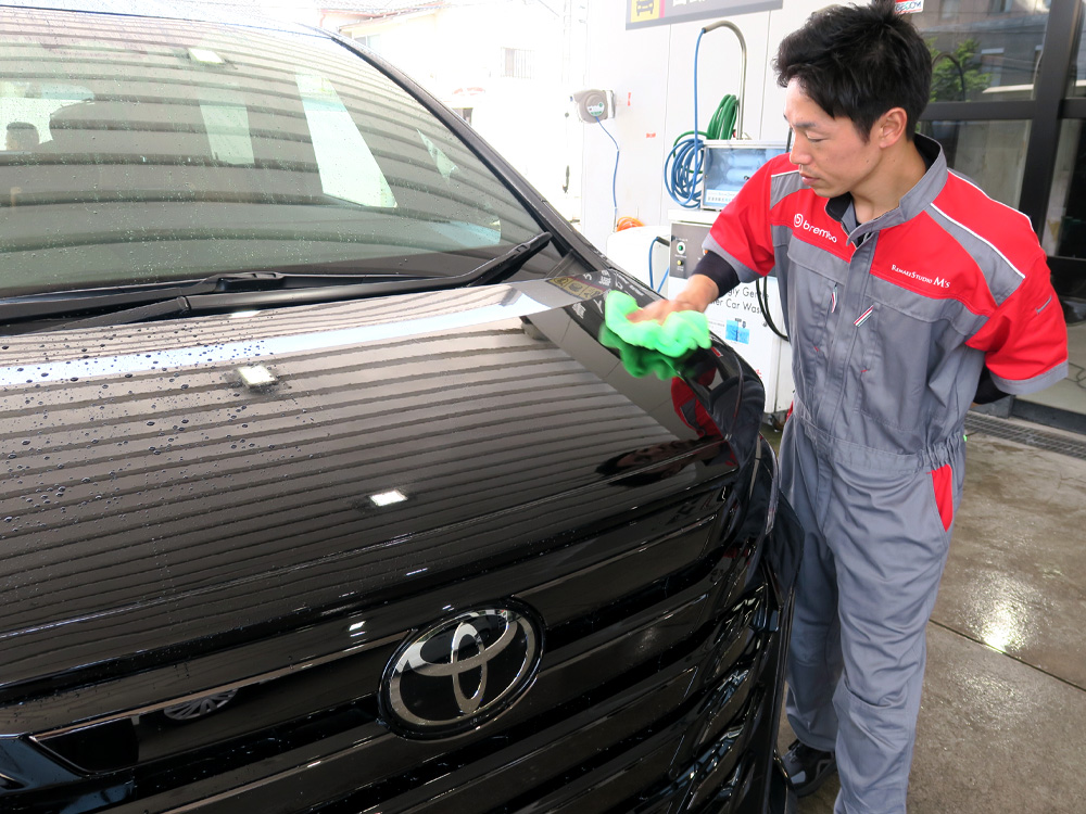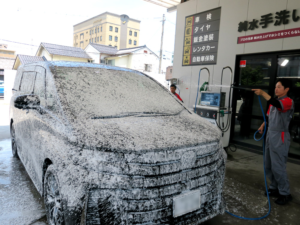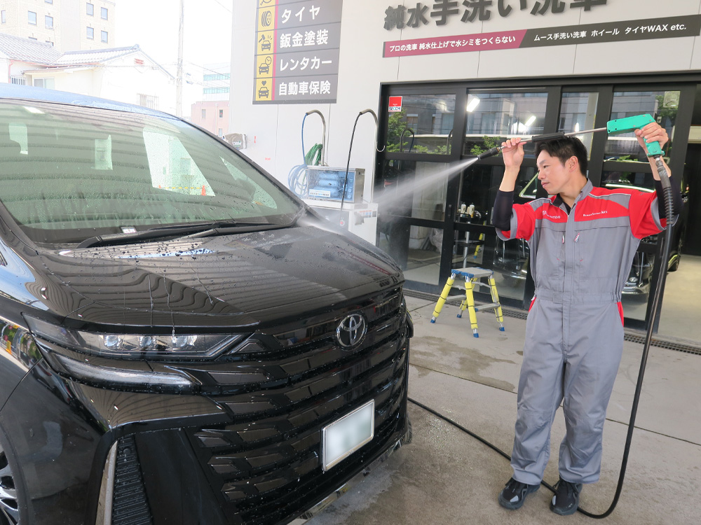 愛車を優しく守る純水手洗い洗車