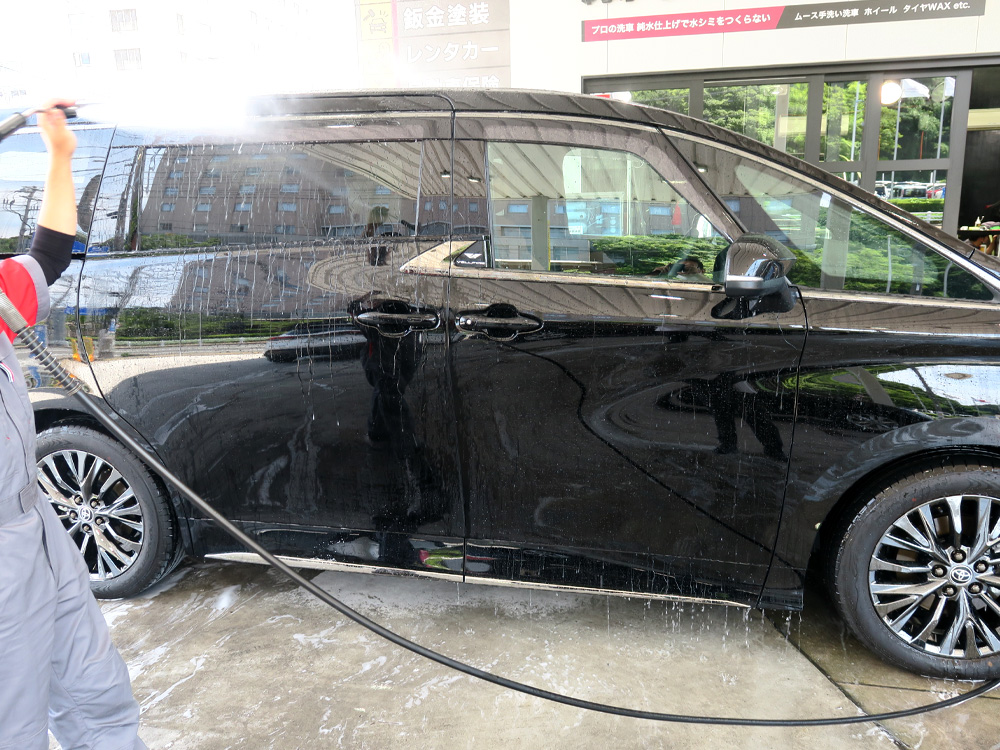 洗車の仕上げには”純水”で車全体を洗い流します。